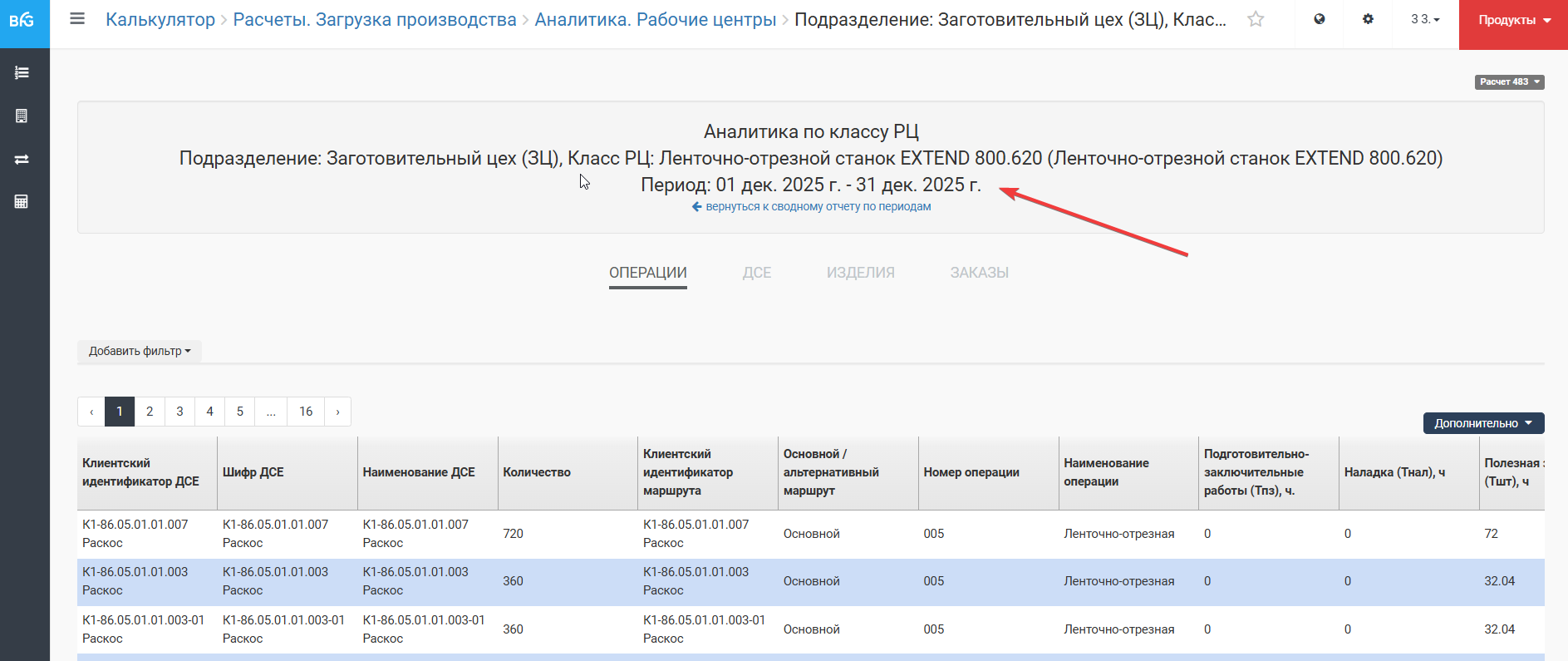 На вкладках Операции, ДСЕ, Изделия, Заказы представлена информация о том, какие именно операции, или изготовление каких деталей, заказов или изделий загружают выбранный рабочий центр при исполнении плана: