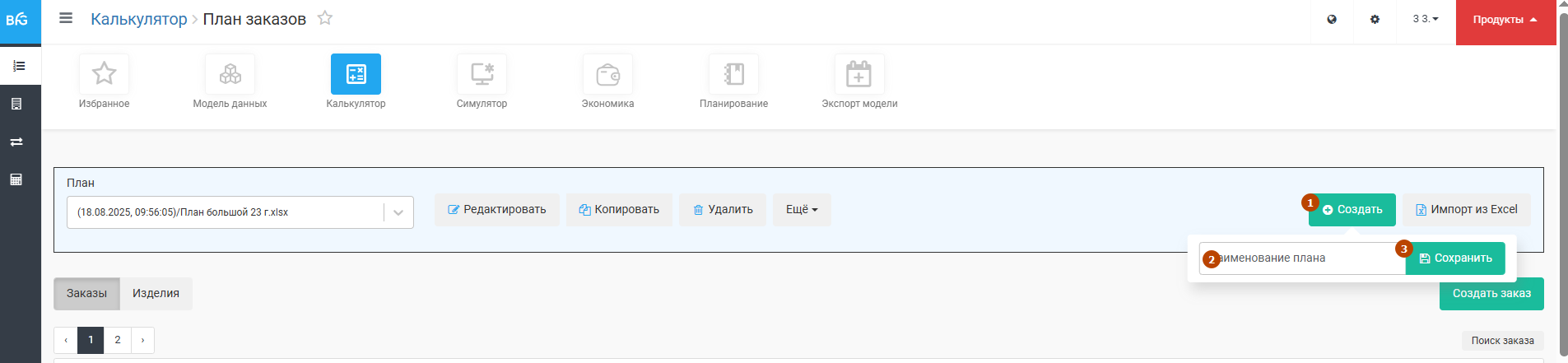 Нажмите кнопку Создать, введите название плана, сохраните: