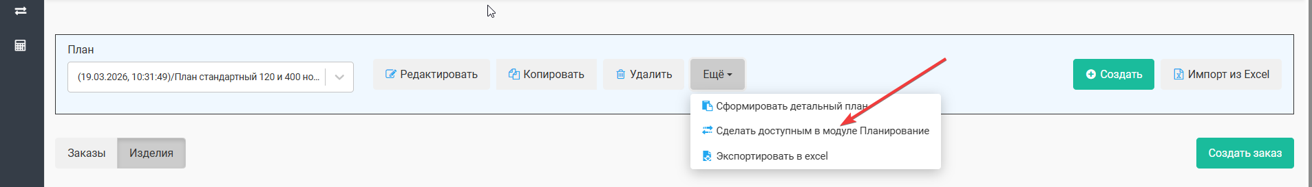 Переход в модуль Планирование происходит при выборе соответствующей вкладки: